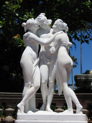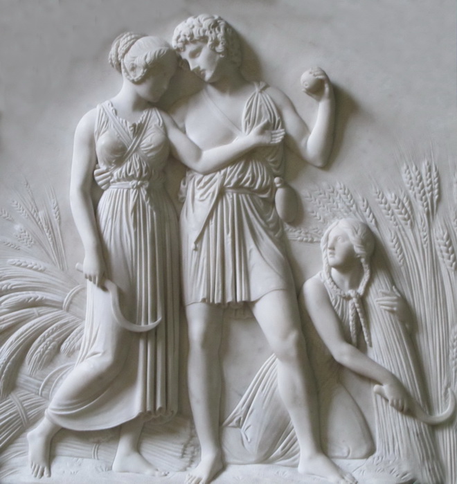A number of eunuchs, who guard the women, walked before her, and in this way she came to the pavilion where the lord was, and sat down near him, with all her ladies, and three ladies held her head dress with their hands, that it might not fall on one side.