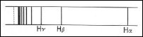 | HYDROGEN SPECTRUM expresses the behavior of a fundamental constituent of matter, the electron. Shown above is a part of the Balmer series of spectral lines. Each line is the result of a change in energy of the atom’s electron. |