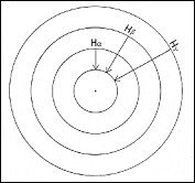 One distinguishes two things in a wave. First, a wave has a front, and a succession of wave fronts forms a system of surfaces like the layers of an onion. A two-dimensional analogue is the beautiful wave circles that form on the smooth surface of a pond when a stone is thrown in. The second characteristic of a wave, less intuitive, is the path along which it travels—a system of imagined lines perpendicular to the wave fronts. These lines are known as the wave ‘‘normals’’ or ‘‘rays.’’ |