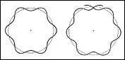 | DALGA DÜZENEKBİLİMİ elektronu bir nokta kütle olarak değil ama atomda ileri geri çalkalanan durağan bir dalga olarak görür. Kimi titreşim kipleri olanaklıdır (sol), başkaları değil (sağ). Olanaklı kipler Bohr’un kuramının olanaklı enerji düzeylerine denk düşer. |