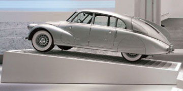 | Bu 1937 tasarmı hava soğutmalı otomobil 6 kişiliktir, sürücü yeri ortadadır. Ve ilk akışımlı tasarımdır. Modernleşme hiç kuşkusuz gelişime açıktır ve gelişim en sonunda onu ortaya koyanların bilinçlerinin, görüşlerinin, beklentilerinin, giderek düşlemlerinin arkasında ve üzerinde kendi mantığını izler. Bu yenilik hemen eskiyen bir doğadadır, ve modernleşmenin mantığı içinde buna direnmez. Bu yenilik uğruna yenilik değildir, modernizm değildir. |