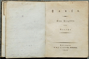 1824 Schiller ile mektuplaşmanın yayıma hazırlanışı. 1825 1826 1827 Roman Zahme Xenien çıktı. 1828 Faust. Der Tragödie erster Teil, Braunschweig’de Ulusal Tiyatroda ilk tam sahnelenişi. 1830 |
